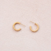 These petite Ribbed Mini Golden Hoops will add a subtle touch of classic style to any outfit. Great addition to any fall outfit, for everyday and on-the-go. Every purchase supports families in areas of extreme poverty.