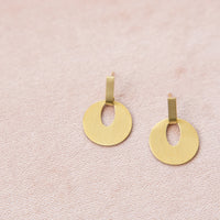 The stunning, Golden Serenity Drop Circle earrings are the perfect fair-trade fashion statement! Each gold-tone brass earring features a small circle and rectangle drop shape to create the beautiful light weight dangle earring! Every purchase creates safe jobs for women and families in South Asia.